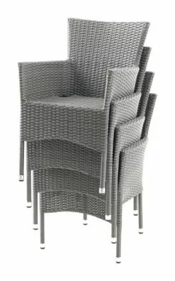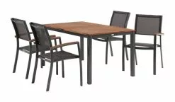 JUTLANDIA YTTRUP L150 Bord Hårdträ + 4 MADERNE Stapelstol Grå