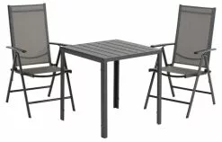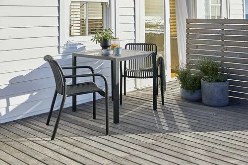 | Material | Ställning: Aluminium, Bordsskiva: Konstträ (polystyren)Konstträ är ett underhållsfritt, syntetiskt material med naturlig trälook. Det är tillverkat av plast, såsom polystyren, som ger ett slitstarkt och väderbeständigt material. Konstträ är UV-skyddat, vilket säkerställer en färgbeständig yta., Ben: Aluminium |