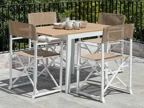 Aluminium och oljat FSC® hårdträ. Med 1 klaff. B70 x L75/126 x H75 cm