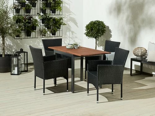 Aluminium och oljat FSC® hårdträ. Med 1 klaff. B70 x L75/126 x H75 cm