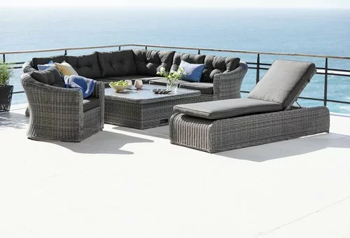 Aluminium och konstrotting. Inkl. exklusiva dynor med slitstarkt, strukturvävt överdrag. B89 x H79 x D86 cm