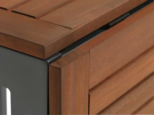 Bord: Aluminium och oljat FSC® hårdträ. Med 1 klaff. B70 x L75/126 x H75 cm. Stol: Aluminium, textilene och oljat FSC® hårdträ. Stapelbar.