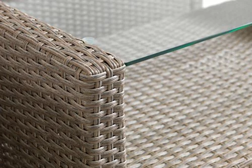 | Material | Ram: Konstrotting (polyetylen)Konstrotting är ett syntetiskt lättviktsmaterial. Det är slitstarkt, UV-skyddat och väderbeständigt., Stål, Bordsskiva: Glas, härdat |