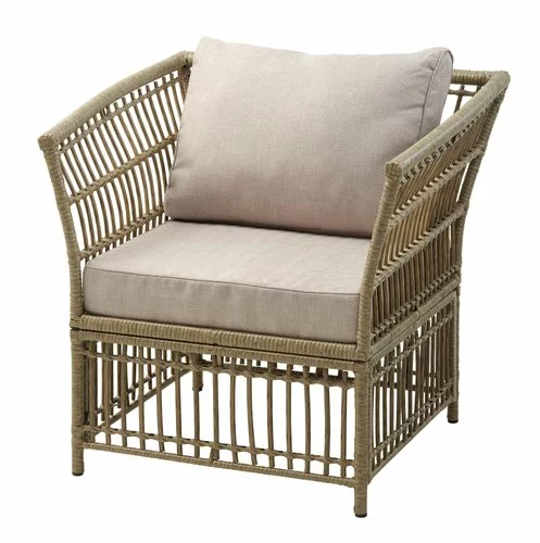 Stål och konstrotting. Inkl. exklusiva dynor med slitstarkt, strukturvävt överdrag. B79 x H75 x D74 cm