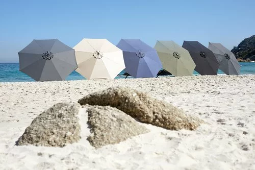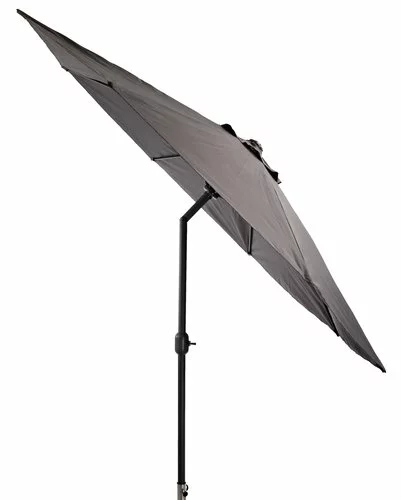 Vattentålig, UV-skyddad polyesterduk och aluminiumstång. Med tiltfunktion, handvev och ventilation. Ø300 x H246 cm