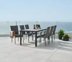 JUTLANDIA YTTRUP L150 Bord Hårdträ + 4 LIMHAMN Positionsstol Grå